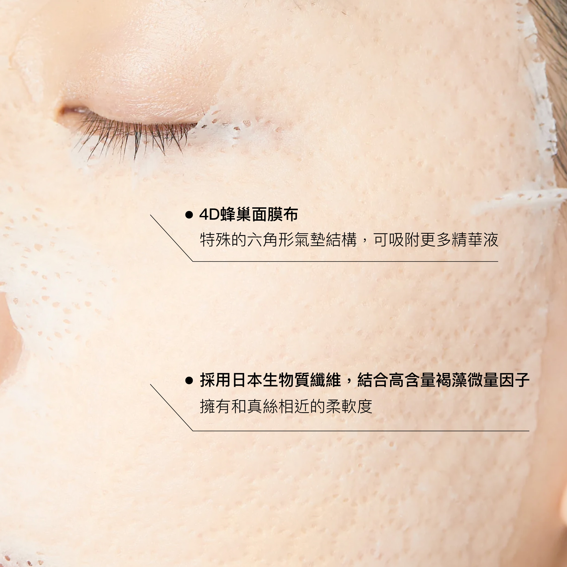 ‧採用4D蜂巢面膜布:特殊的六角形氣墊結構,可吸附更多精華液