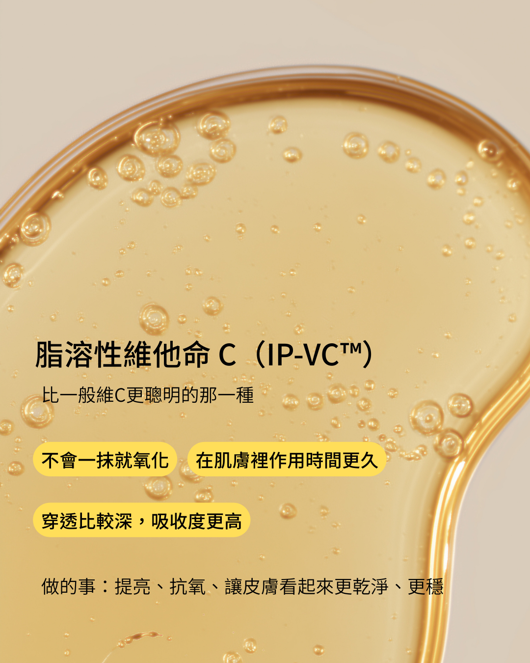 💧 添加脂溶型維他命C(穩定不刺激)