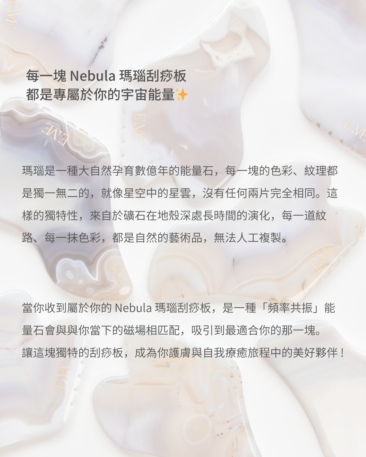 當你收到屬於你的 Nebula 瑪瑙刮痧板,這不是巧合,而是一種「頻率共振」能量石會與與你當下的磁場相匹配,吸引到最適合你的那一塊💫