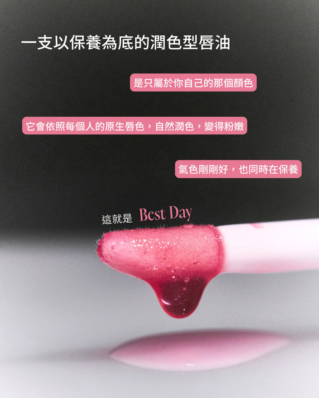 🌸Best Day的潤色效果會依照每個人的原生唇色與唇部溫度,產生自然變化,因此呈現的顏色也會略有不同。